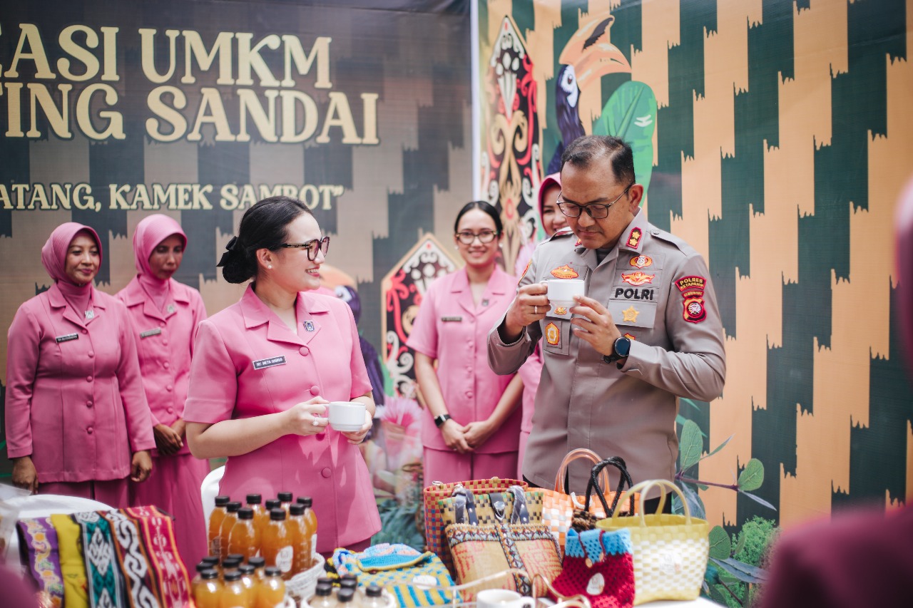 Kegiatan dilanjutkan dengan peninjauan Gerakan Pasar Murah (GPM) yang diselenggarakan oleh Polsek Sandai, serta kunjungan ke stand kreasi UMKM Ranting Bhayangkari Sandai, sebagai bentuk dukungan terhadap ketahanan ekonomi masyarakat lokal.
